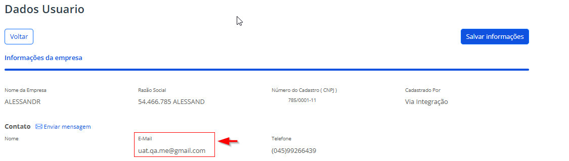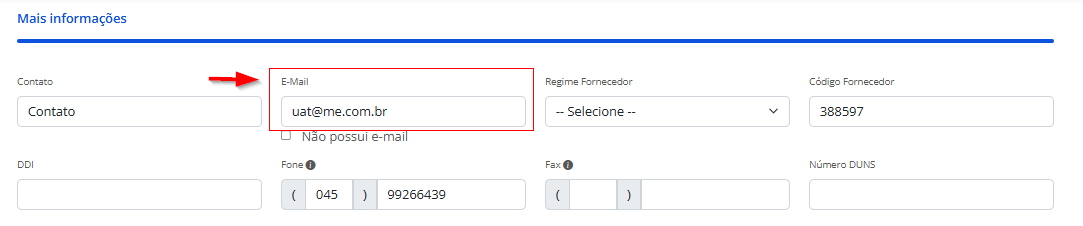 Este é o e-mail institucional e central do fornecedor dentro do sistema.