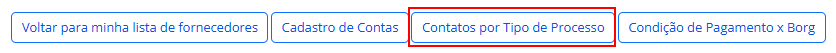No final da página, há o botão “Contatos por tipo de processo”, que permite definir contatos específicos para cada tipo de processo — por exemplo: