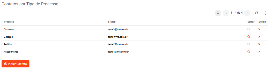 Cotações, pedidos e demais processos serão enviados para esse e-mail sempre que forem criados, alterados ou cancelados.